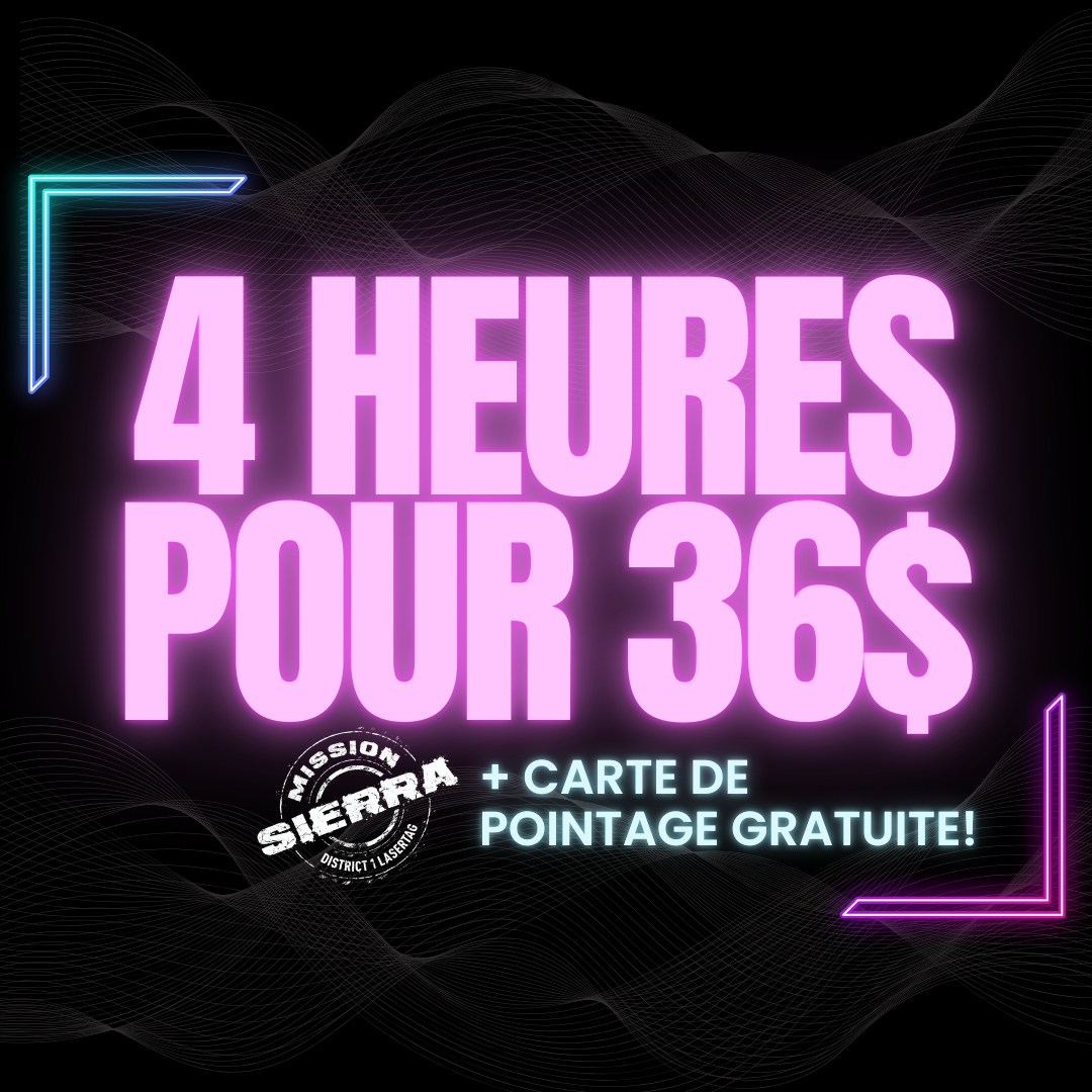 Le Sierra du Jeudi vous offre 4 heures de Lasertag à 22 $, soit le prix de 2 parties seulement.