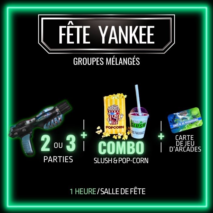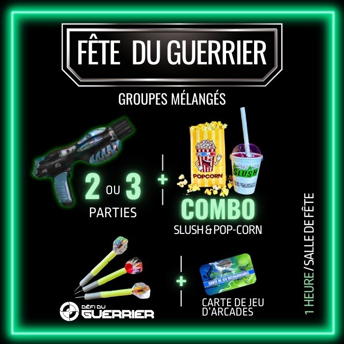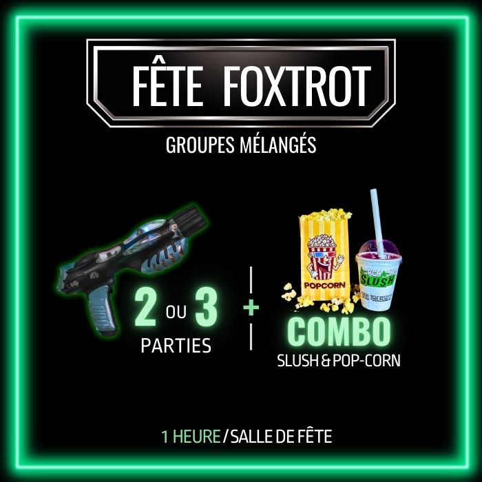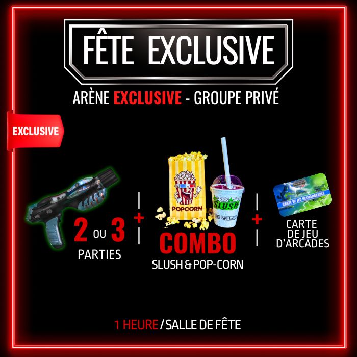 L'activité se déroule dans une arène de jeu (6000pi2 sur 2 étages) où vous serez mélangés avec d'autres joueurs. L'expérience de jeu est de 20 minutes et nous recommandons cette activité à partir de l'âge de 7 ans. Le Lasertag est aussi adapté aux adultes pour une expérience en famille ou entre amis!