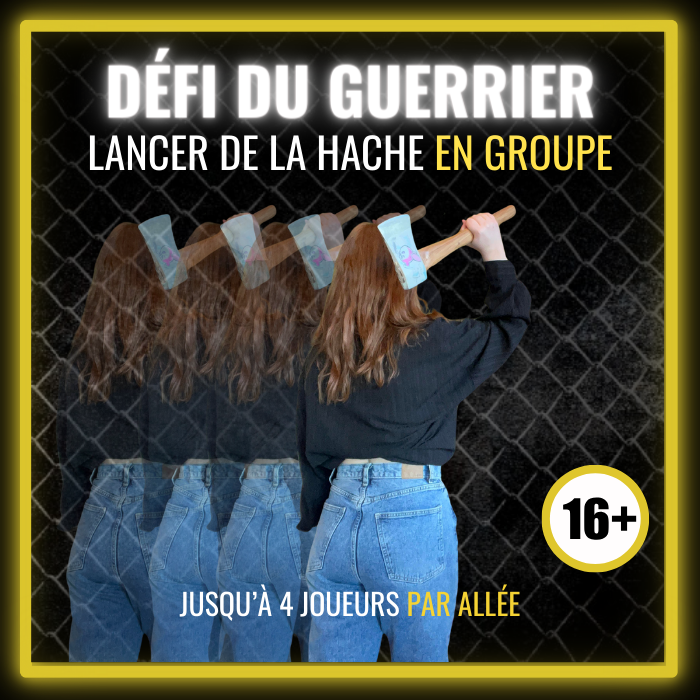 Vivez l’expérience unique de notre attraction en réalité augmentée, exclusive au Québec : lancez une vraie hache, explorez plusieurs modes de jeu et laissez-vous emporter par le plaisir et l’adrénaline !