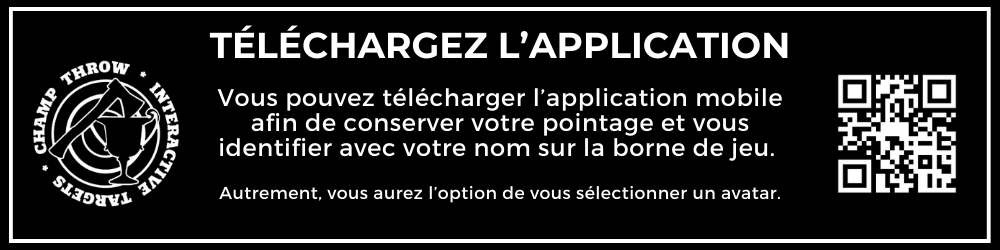 - Vous pouvez télécharger l’application afin de conserver votre pointage et vous identifier avec votre nom sur la borne de jeu. Autrement, vous aurez l’option de vous sélectionner un avatar.